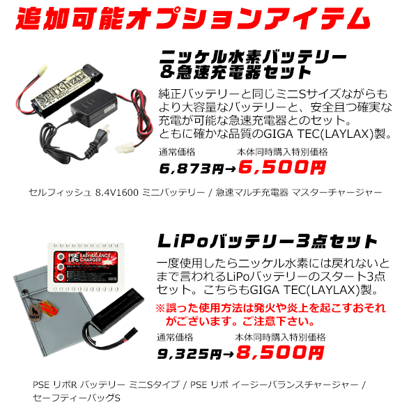【追加可能オプションアイテム】 セルフィッシュミニバッテリー(4560329176160)/マスターチャージャー(4560329174074)/PSEリポR ミニS(4571443141064)/イージーバランスチャージャー(4571443131935)/セーフティーバッグS(4571443131911)/次世代AK47用90連マガジン(4952839177247)/バックボーンガンケースNEO Mサイズ(4571443137562) ※メーカー、流通の事情により発売が延期になる場合がございます。